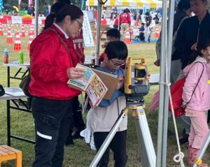 今回も測量機器を使った体験で怪盗建フェスからの挑戦状というブースに参加しました。