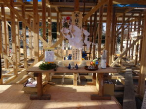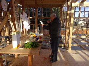 祝詞をあげ工事関係者に対しここまでの施工完了を感謝して祝うとともに、
