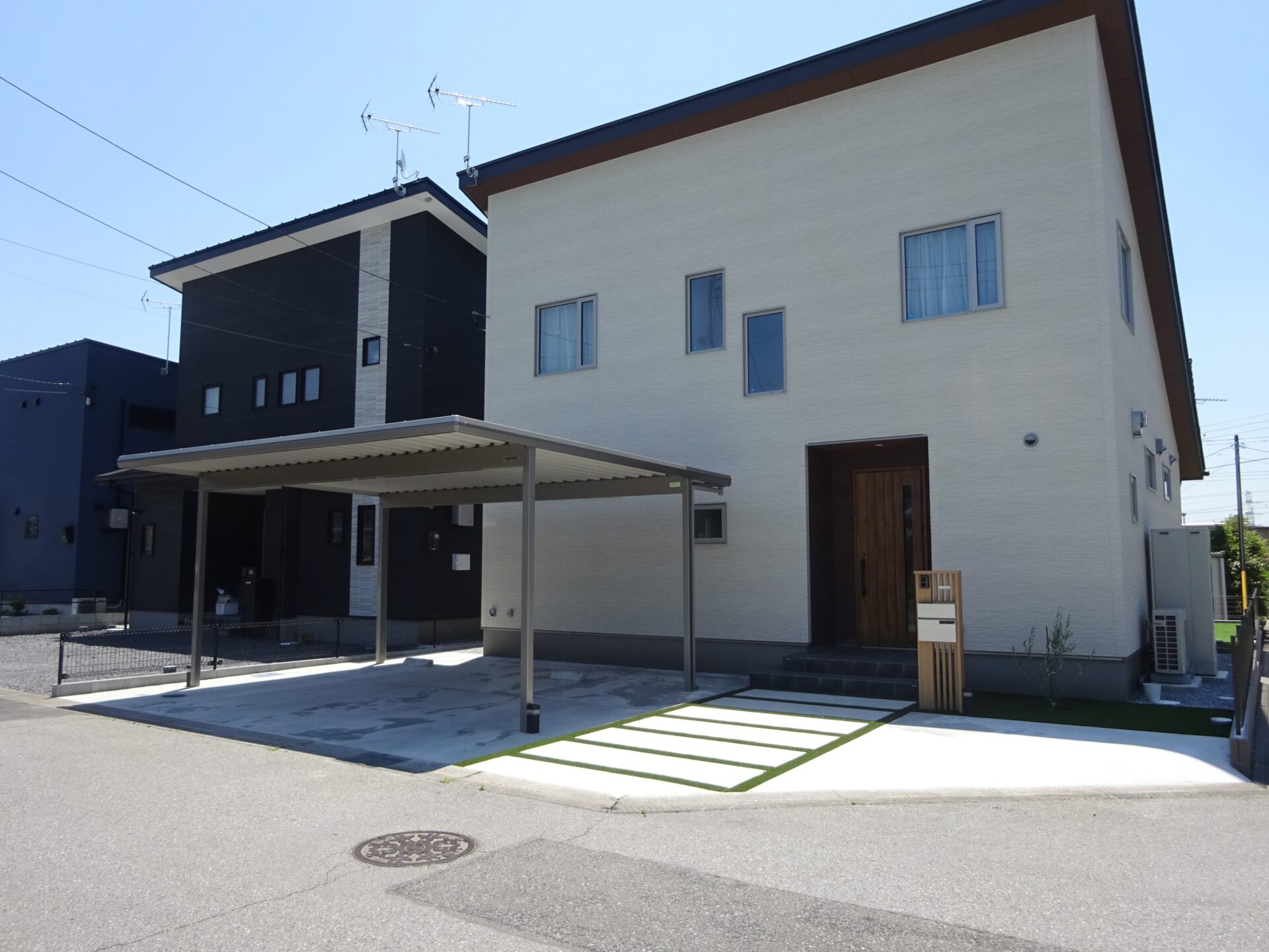 コンクリートの白と芝の緑でとても綺麗に仕上がりました✨
